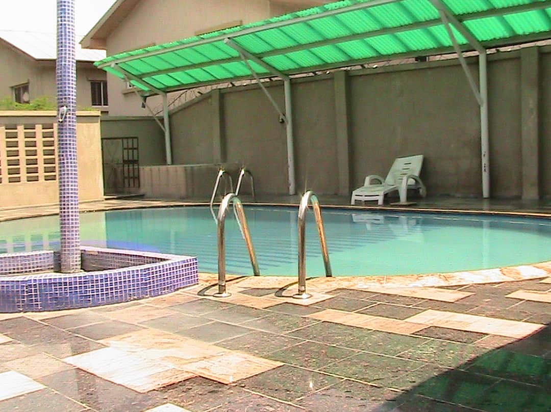 (1) a swimming pool + outdoor shower, equipped with a Gymnasium, and split unit air conditioners.